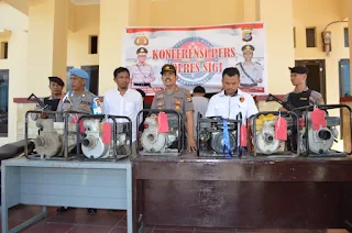 Saat ini kata Kapolsek Hendry, pihaknya juga mengamankan 6 unit mesin alkon dan 1 sepeda motor Yamaha Vega R warna biru dan 1 unit Yamaha Jufiter MX warna hitam.